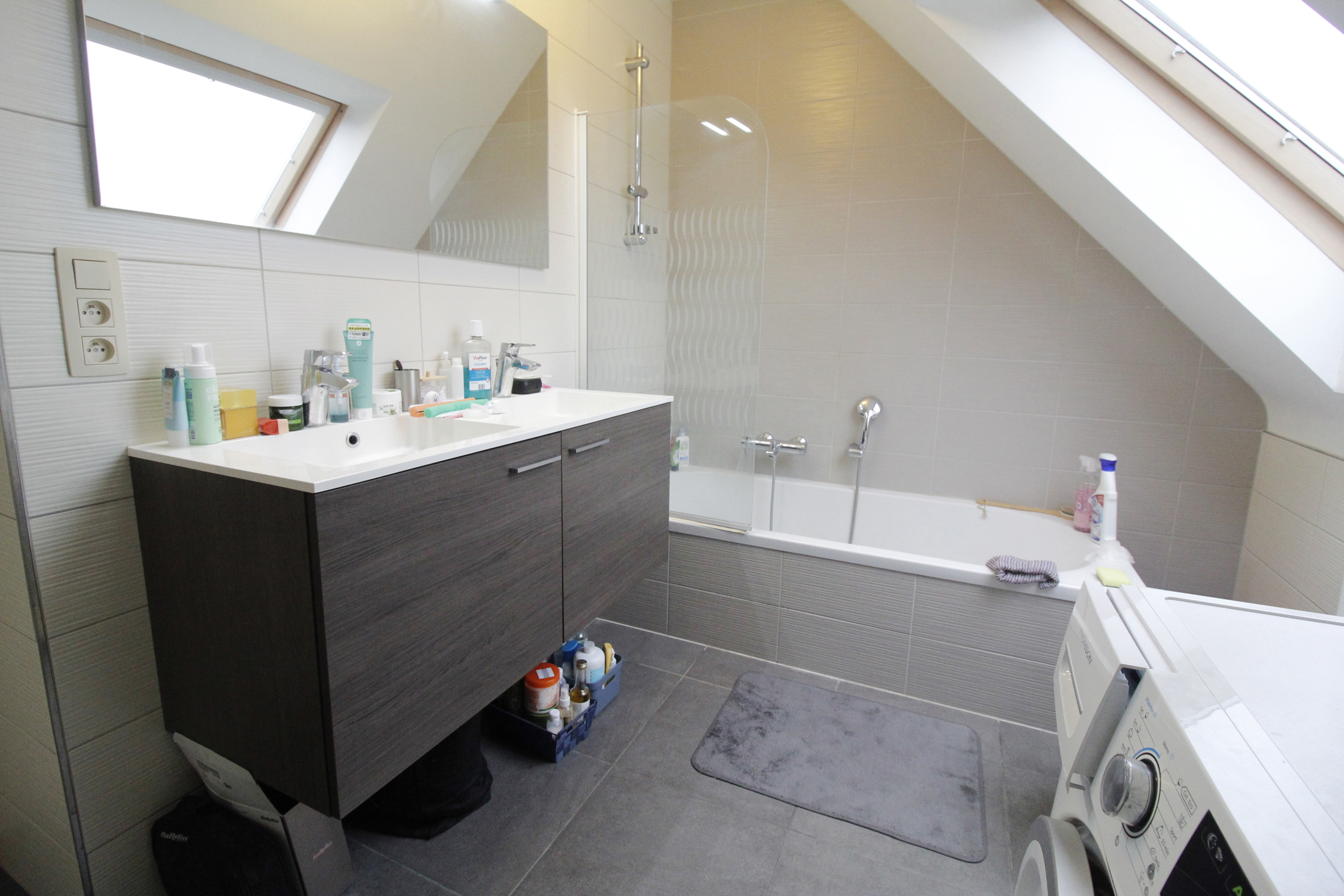 Energiezuinig duplex appartement met autostaanplaats -te Haaltert ! Dit strategisch gelegen appartement bevindt zich in de nabijheid van winkels, scholen, het openbaar vervoer, station en de verbindingswegen E40 en N45. Het appartement omvat een inkomhal met berging, een apart toilet, een ruime leefruimte met keuken en aanpalende berging, tevens zijn er 2 terrassen, zowel vooraan als achteraan. Op het duplex gedeelte vindt u de 2 slaapkamers en de badkamer. Extra toeven van dit appartement zijn de zeer grote kelder en de autostaanplaats achteraan, deze inclusief de huurprijs! Mogelijkheid om garagebox bij te huren. EPC: B. Voor meer info www.vandevondel.be.