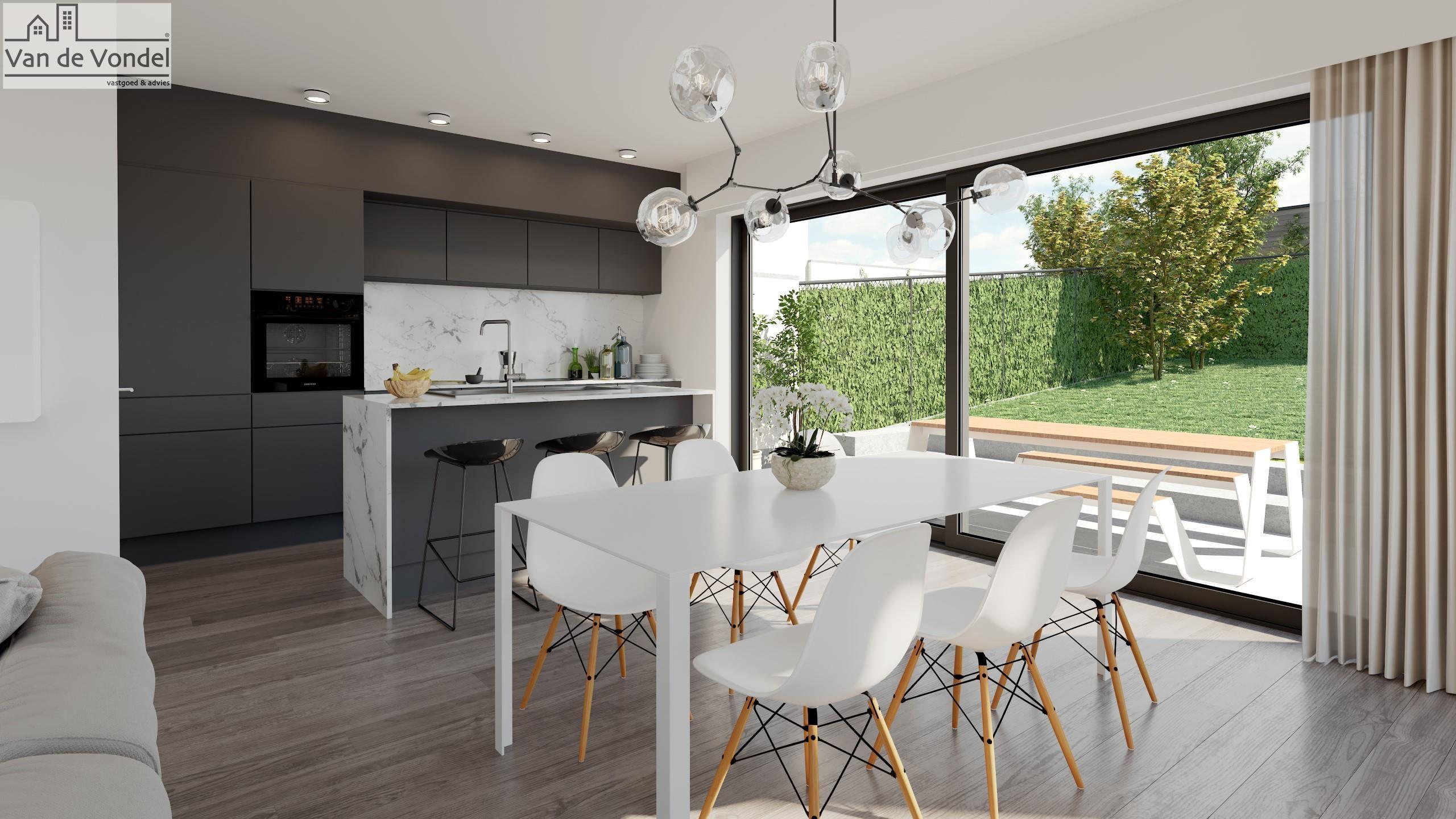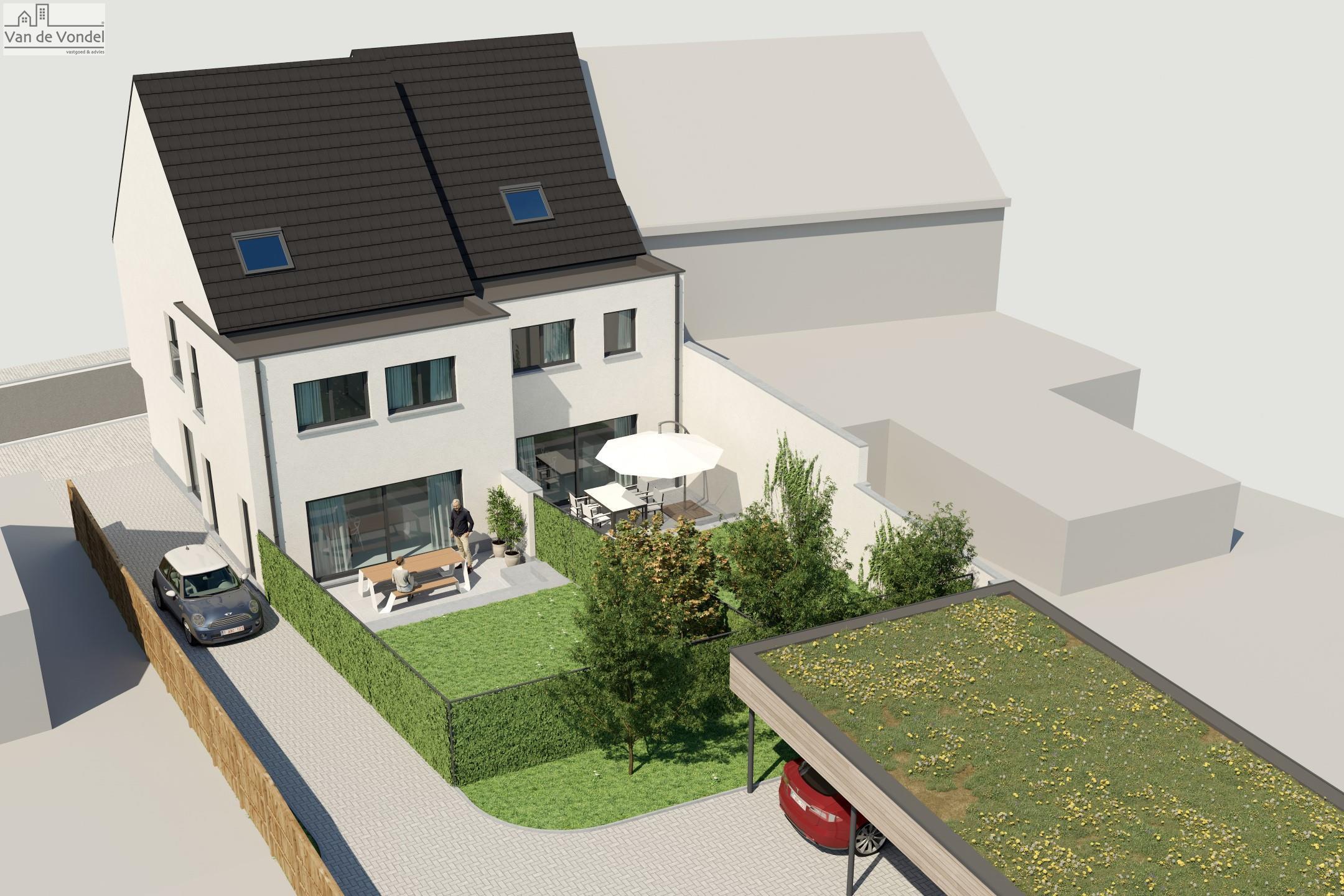Casco omvat ruwbouw, dak, ramen, gepleisterd crepi wit, ramen aluminium en carport voor 1 wagen.
