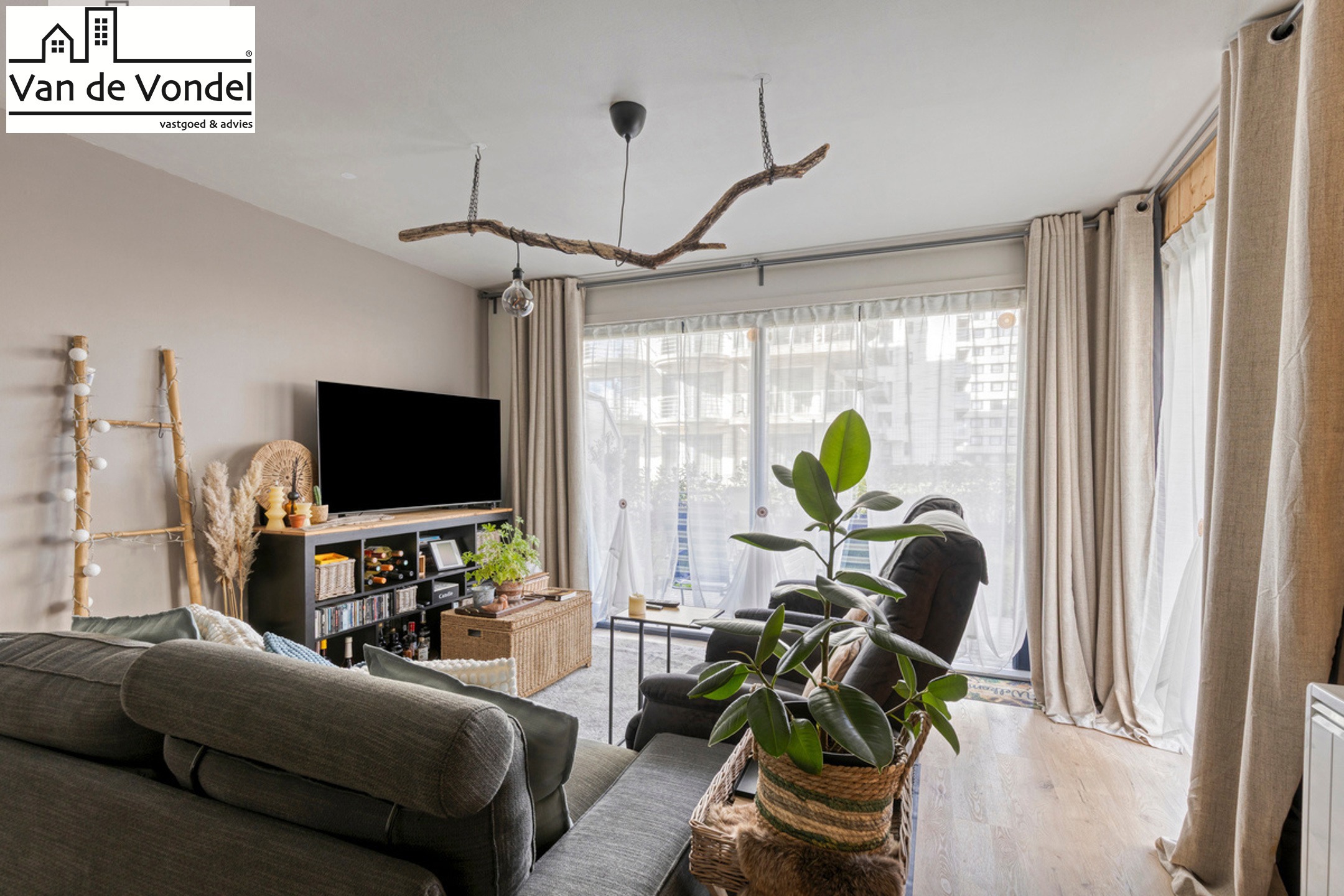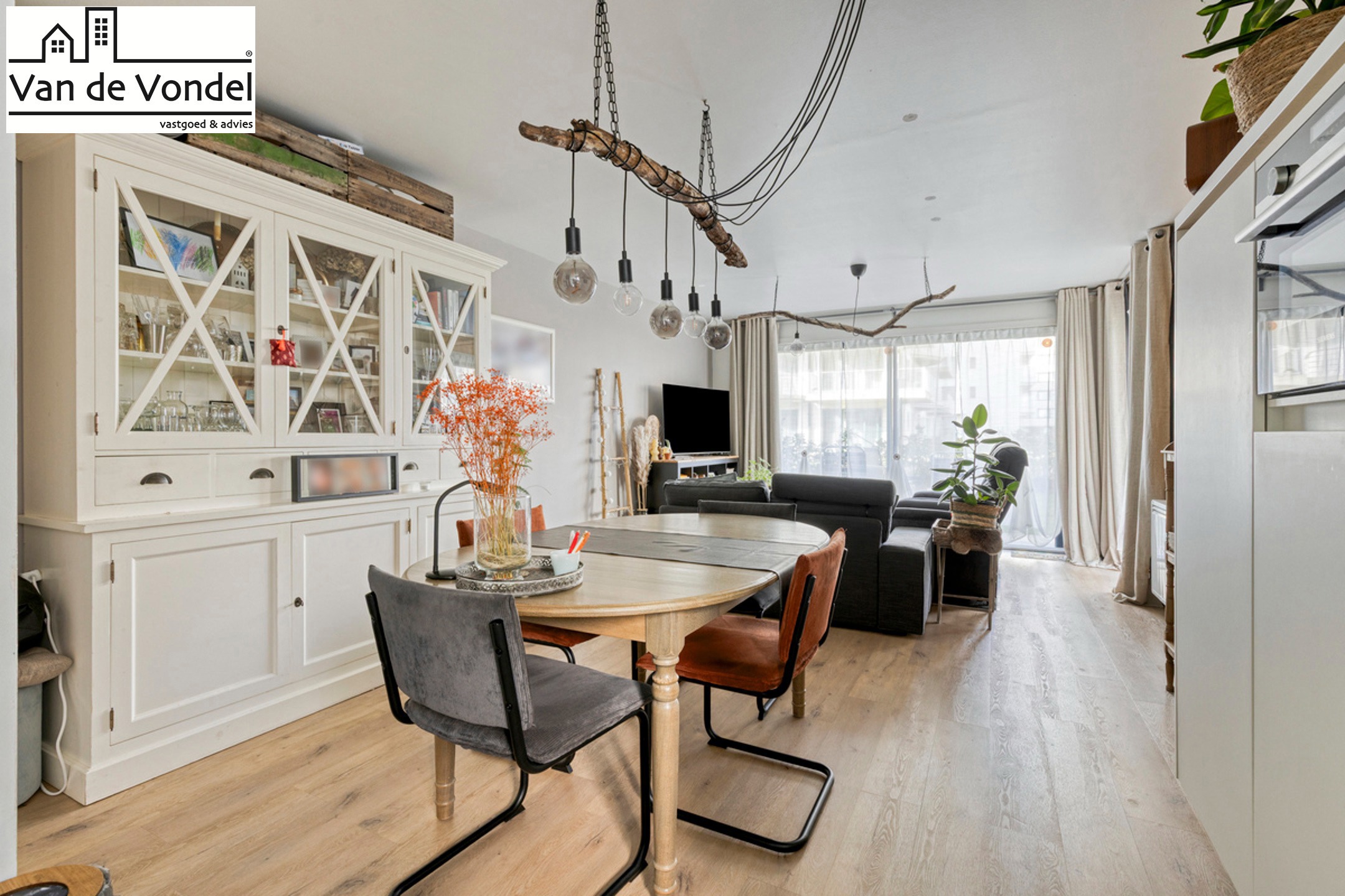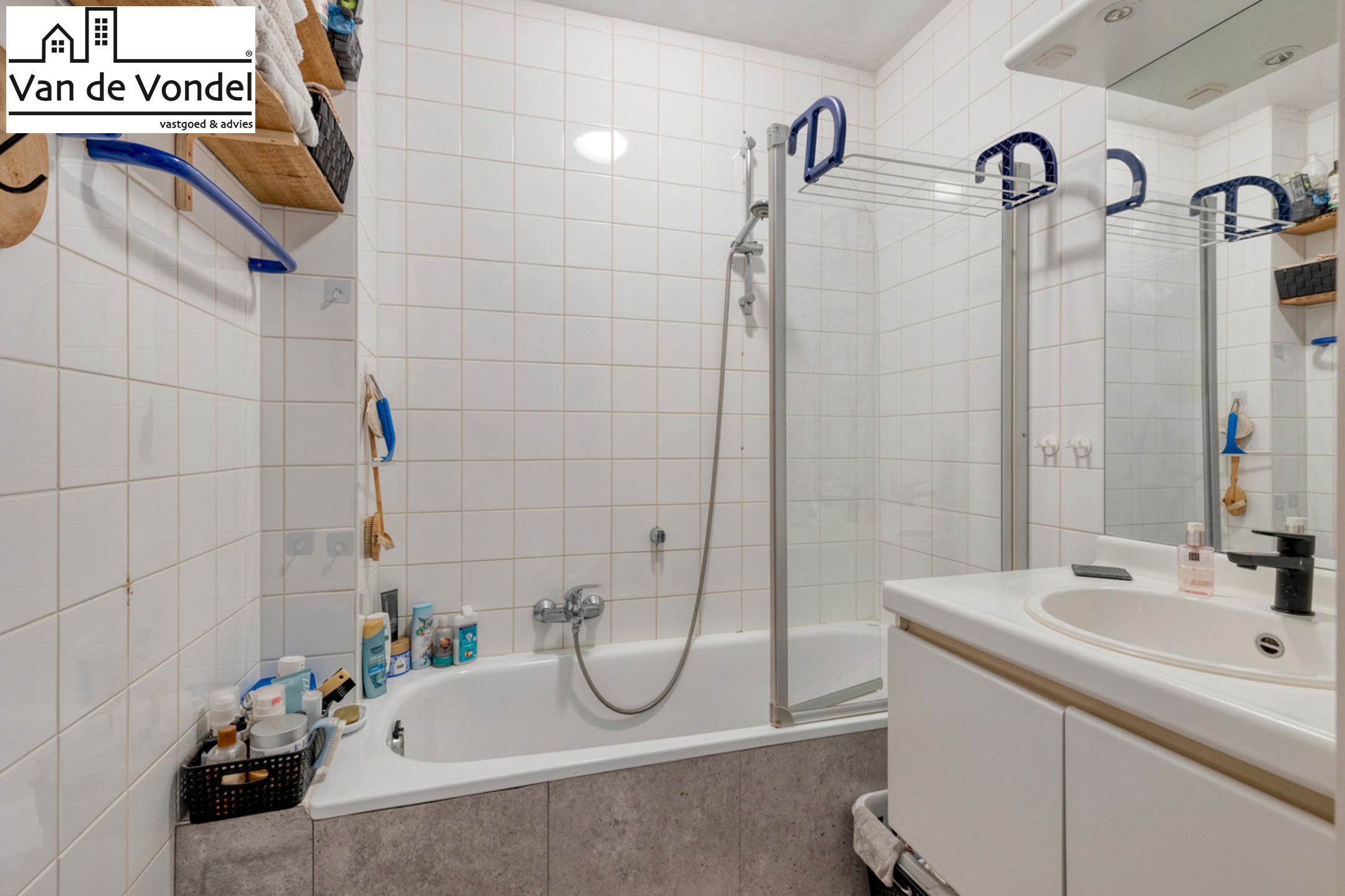 Het appartement beschikt bovendien over een ruime slaapkamer en een verzorgde badkamer, aangevuld met een afzonderlijk toilet. Extra praktisch is de aparte berging, uitgerust met een aansluiting voor wasmachine.