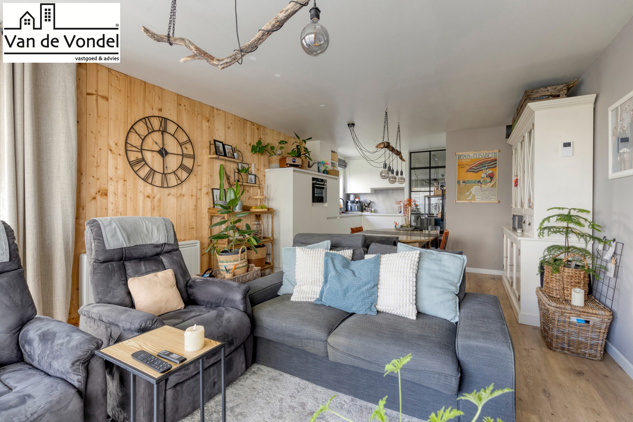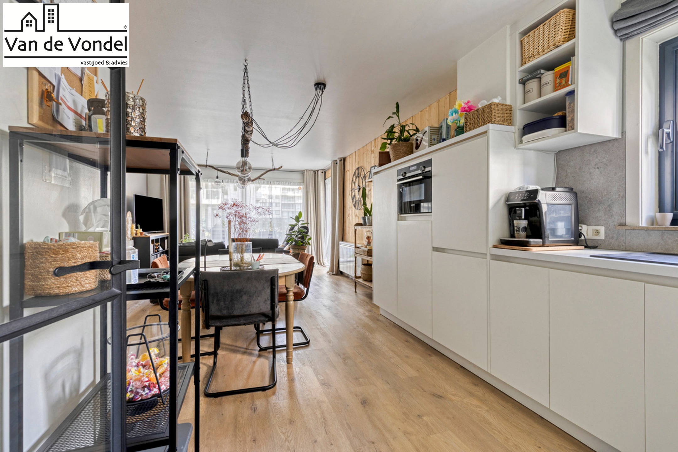 Bij het binnenkomen kom je terecht in een lichtrijke leefruimte met grote raampartijen die zorgen voor een open en ruimtelijk gevoel. Aansluitend vind je de volledig nieuwe, ingerichte keuken, die naadloos aansluit op de leefruimte.