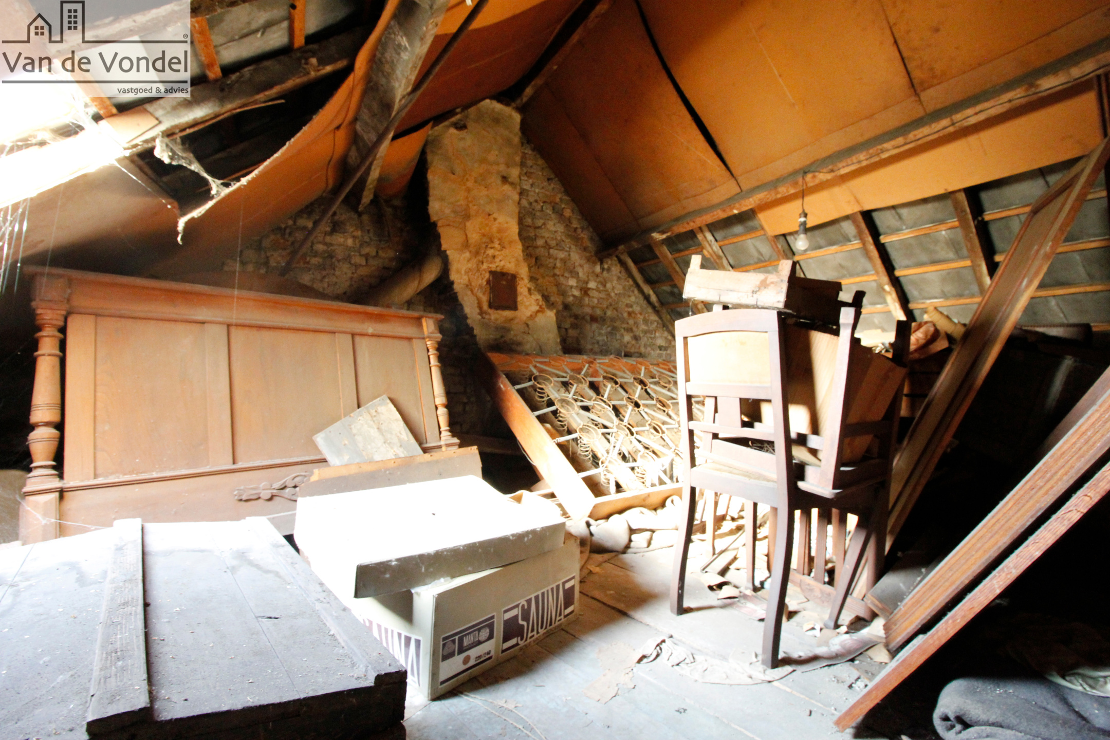 Deze woning situeert zich centraal nabij het O.L.V. en nabij winkels, scholen, het openbaar vervoer en de verbindingswegen. Momenteel is de woning ingedeeld in een leefruimte/keuken, een badkamer met douche, een 2de leefruimte/keuken en 2 werkplaatsen. De eerste verdieping omvat 2 slaapkamers. De zolder, die te bereiken is met een vaste trap, kan verder ingericht worden in meerdere slaapkamers of polyvalente ruimte. De zuidgerichte tuin (180m²) is een absolute troef. Bent u op zoek naar een renovatieproject, aarzel dan niet en contacteer ons op 0489/200.248 voor een bezoek ter plaatse.Voor meer info www.vandevondel.be. EPC waarde: 1008 kWh/m².