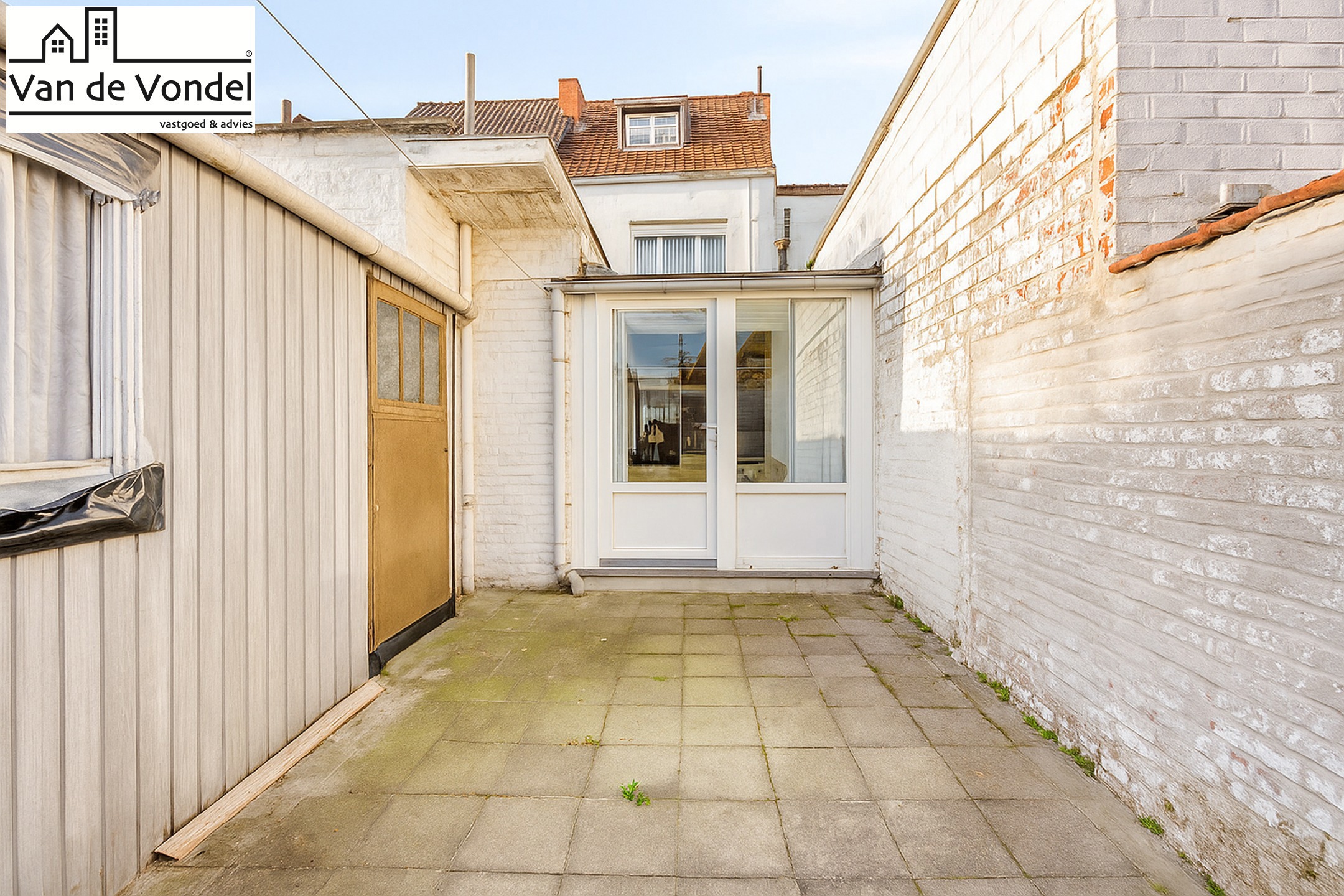 Achteraan bevindt zich een veranda die uitkijkt op het zongericht terras – ideaal voor wie houdt van buitenruimte midden in de stad.